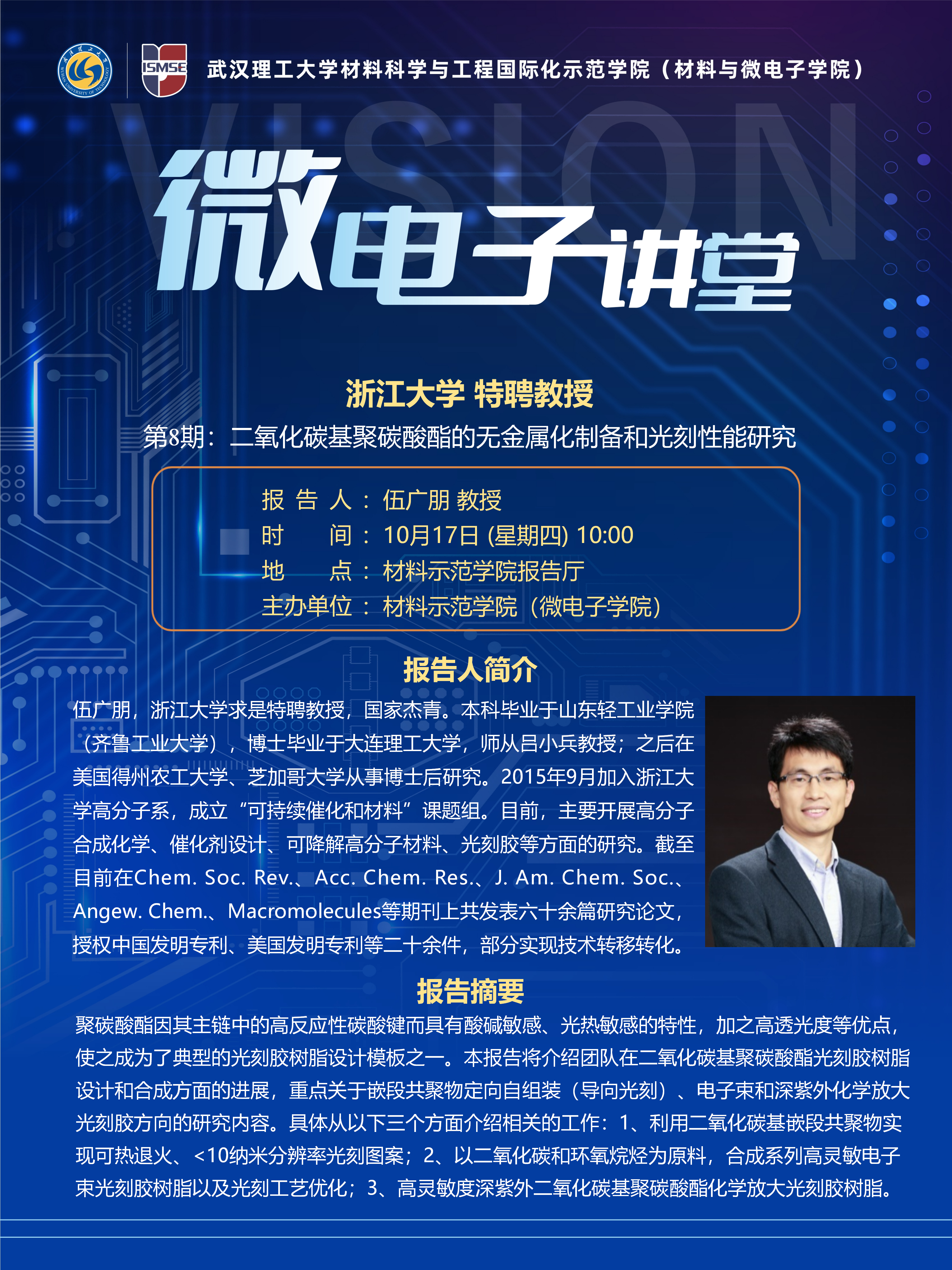 【微电子讲堂】第8期:二氧化碳基聚碳酸酯的无金属化制备和光刻性能研究