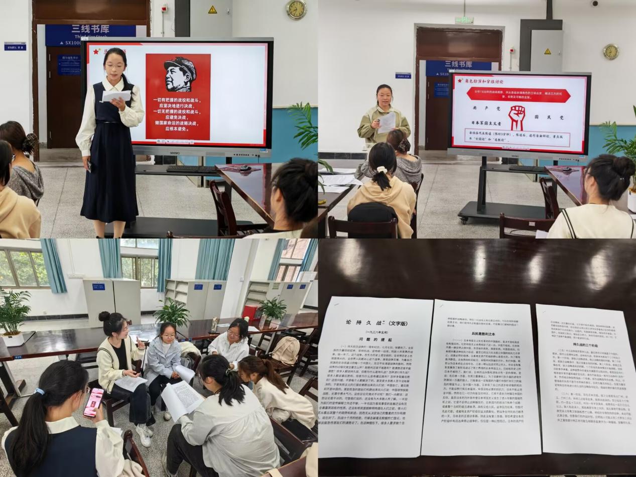 1018纪念中国人民抗日战争暨世界反法西斯战争胜利八十周年,让同学们深入领悟经典著作的时代价值,皇冠博彩网站 微电子皇冠博彩网站 、马克思主义皇冠博彩网站 学生马克思主义理论研学会在西院图书馆举办“重读经典,论道持久”——《论持久战》主题读书会西院图书馆吕静平老师及两院师生共同参与。